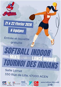 Centre Omnisport Jacques Clouché de Boé Tournoi Indoor de Softball Mixte des Indians ![]() Avec les Raiders d'Eysines, les Panthères de Pessac, les Rockies de Billère et les Indians. Les Rockies de Billère remporte le tournoi ! Dimanche 8 décembre 2019 Salle EDF, rue Jean Rodès au Passage Tournoi Indoor de Softball 15U des Indians